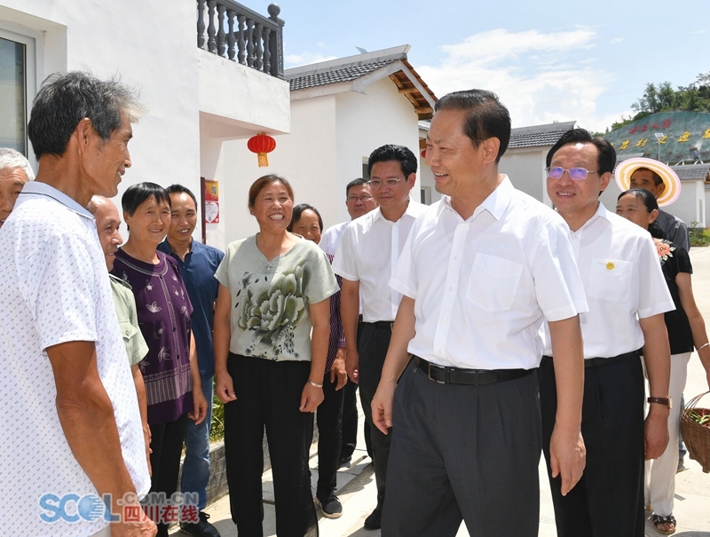 8月的秦巴山区树木苍翠、郁郁葱葱,一幢幢农家小院坐落在青山绿水之间。彭清华先后来到广元市朝天区蒲家乡罗圈岩村、剑阁县汉阳镇中心村、巴中市南江县正直镇长滩村、巴州区曾口镇书台村,走进村委会、便民服务站和特色农业园区,与基层干部群众、返乡创业人员亲切交流,详细了解现代农业发展、农村环境整治、电商扶贫、基层党组织建设等情况。彭清华指出,实施乡村振兴战略是新时代做好“三农”工作的总抓手,必须摆在治蜀兴川的优先位置来抓。要科学编制相关规划,进一步优化村落布局、凸显建筑特色,注重保护乡村自然风貌、田园风光、历史文化和民俗风情,让群众看得见山、望得见水、留得住乡愁,避免“千村一面”。要大力促进乡村产业振兴、人才振兴、文化振兴、生态振兴、组织振兴,进一步强化利益联结机制、维护农民权益,推动农业全面升级、农村全面进步、农民全面发展。